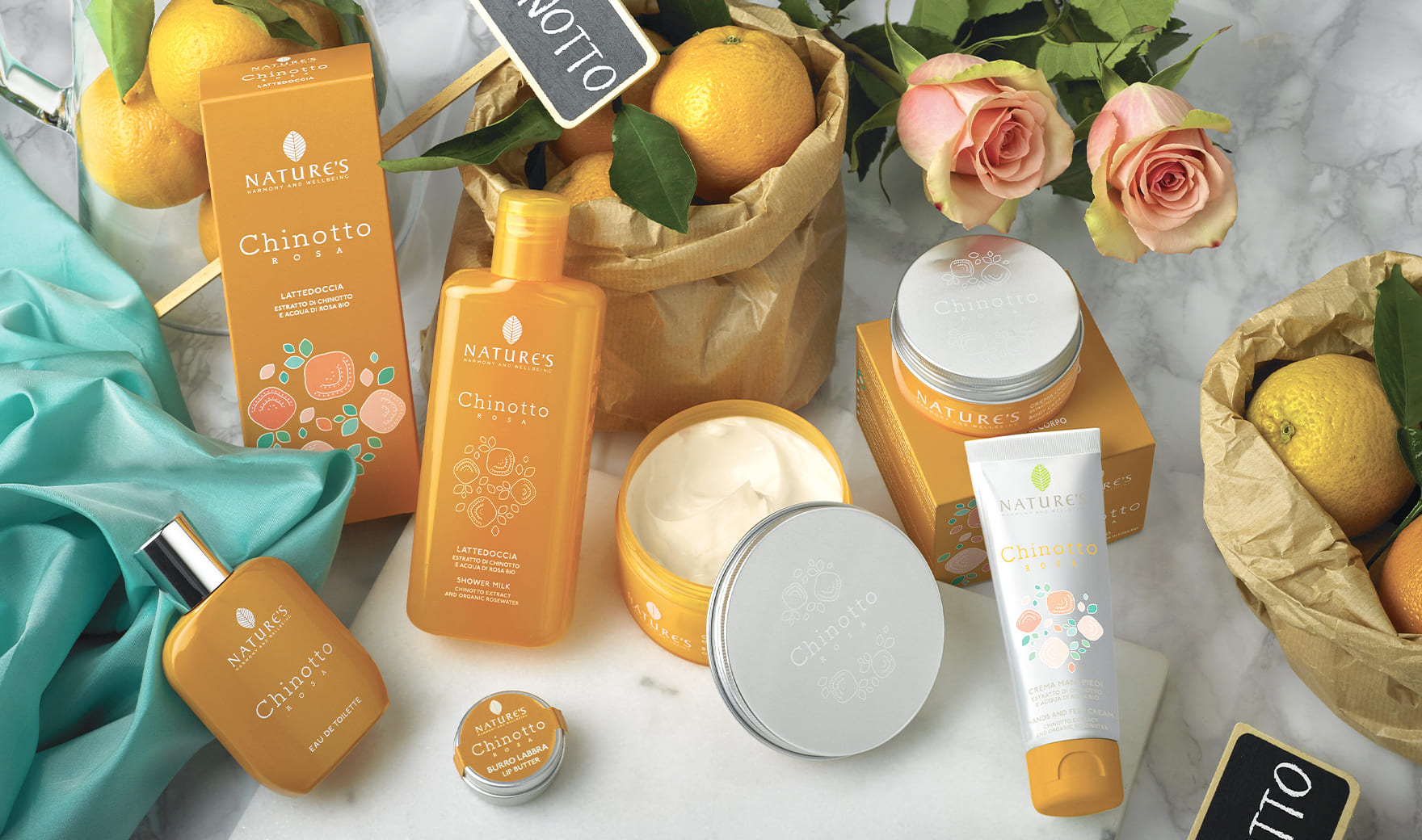 FRAGRANZA Rigenerante, brioso, sensuale ATTIVI PRINCIPALI Chinotto e Acqua di Rosa bio PROPRIETÀ Antiossidante, addolcente
