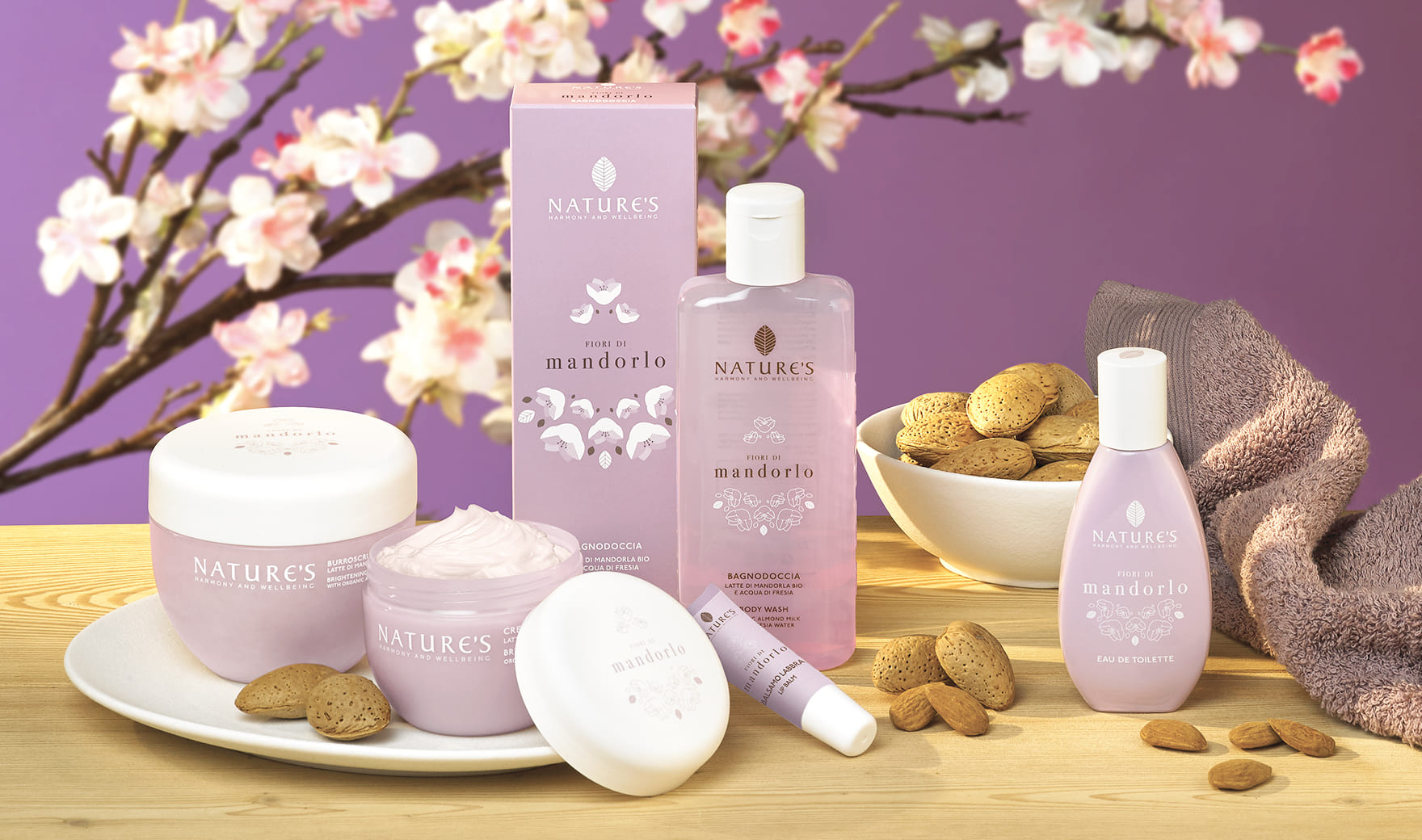 La linea Fiori di Mandorlo nasce dai semi gustosi di questa pianta, da cui si estraggono attivi che la pelle predilige per gli effetti idratanti e lenitivi che le donano freschezza e luminosità.