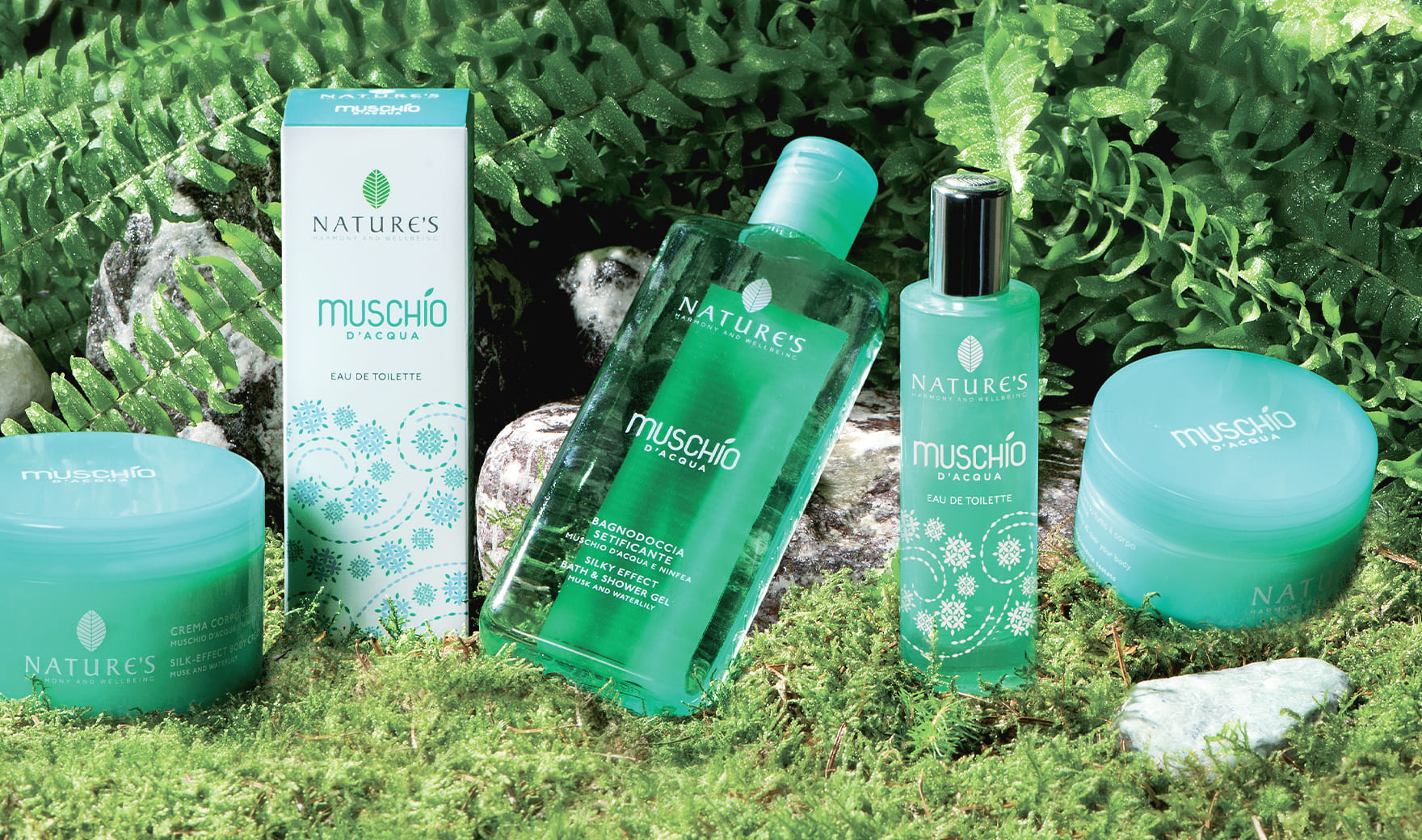 Una partenza fresca come un soffio, un cuore fiorito e un fondo muschiato, caldo e avvolgente sulla pelle. Questa è l’essenza di Muschio d’acqua, cinque prodotti per la bellezza e la cura della donna dalla fragranza sorprendente, fresca e al tempo stesso calda e avvolgente. Si apre con le frizzanti note di Mandarino e Bergamotto esaltate dalla solare luminosità del Frangipani e della Ninfea. Il cuore è una raffinata fioritura di Magnolie e Gardenie vivacizzata da un esotico accordo fruttato. L’abbraccio finale è affidato a morbidi Legni accenti di Vaniglia e trasparenti bagliori di Muschio