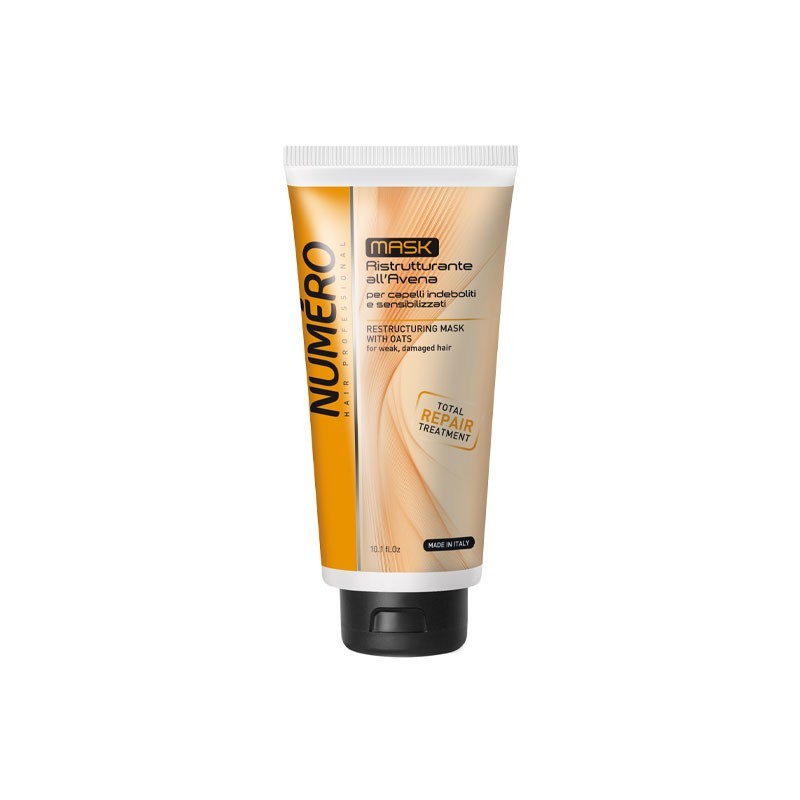 Modo d'uso: dopo aver lavato i capelli con Numero Shampoo Ristrutturante, applicare la maschera su lunghezze e punte e lasciare agire per qualche minuto e risciacquare abbondantemente. Per una maggiore azione ristrutturante applicare a capelli tamponati lo spray bifase abbinato.