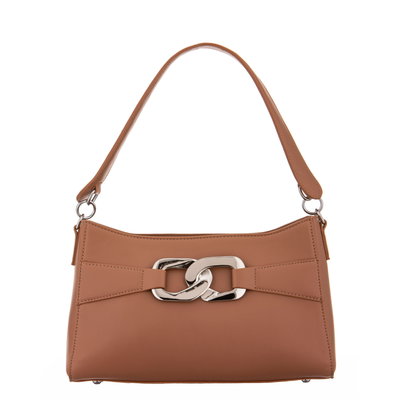 Dalla forma allungata e compatta, questa borsa è l’accessorio perfetto per le donne dal gusto raffinato che cercano accessori ricercati. Questo modello è caratterizzato da un elemento geometrico sul davanti. Si tratta di due anelli cromati concatenati tra loro conferiscono alla borsa uno stile contemporaneo e ricercato. Non trascurando la funzionalità, questa borsa è dotata di un unico scomparto chiusura con cerniera a zip, che rende la borsa capiente e morbida.