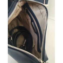 Borsa donna in tessuto jeans e ecopelle blu con pochette interna removibile e tracolla regolabile. Versatile, elegante e perfetta per ogni giorno.