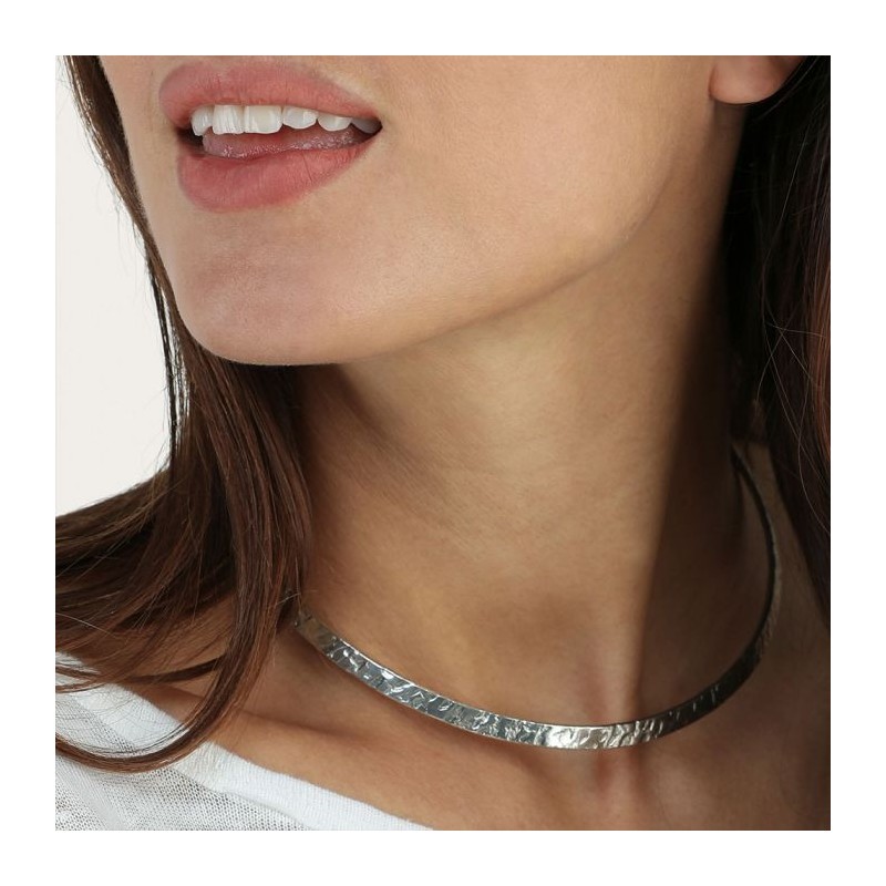 Collana girocollo rigida con effetto battuto. Lavorazione artigianale.